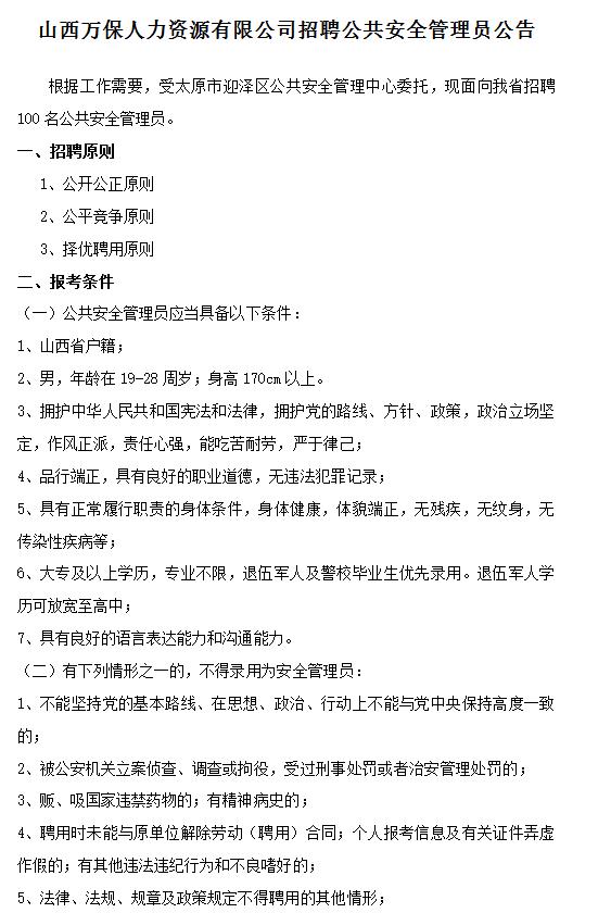 根據(jù)工作需要,經(jīng)市政府批準(zhǔn),現(xiàn)面向社會(huì)招聘60名(男35人,女25人)警務(wù)輔助人員,派遣至太原市公...